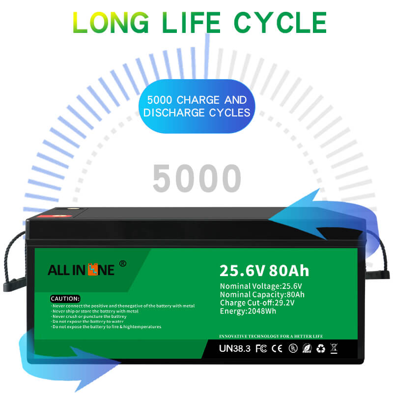 यह 25.6V 80Ah LFP बैटरी एजीएम / जीईएल बैटरी के लिए सही प्रतिस्थापन हो सकती है, ऑल इन वन ग्राहक की विशिष्ट आवश्यकताओं के अनुसार विभिन्न क्षमता, आयाम और कार्यों के साथ अनुकूलित बैटरी भी प्रदान करती है। एजीएम/जीईएल लेड एसिड बैटरियों की तुलना में, ऑल इन वन ली-आयन (LiFePO4) प्रतिस्थापन समाधानों के निम्नलिखित फायदे हैं