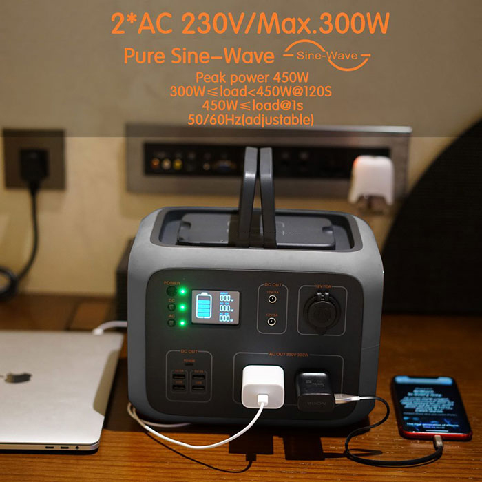 500Wh पोर्टेबल जनरेटर पावर स्टेशन पावर सप्लाई के साथ 300W डीसी / एसी इन्वर्टर, आउटडोर कैम्पिंग यात्रा के लिए डीसी / एसी / यूएसबी आउटपुट